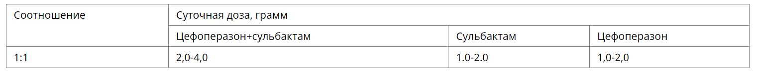 Применение у взрослых. У взрослых, цефоперазон+сульбактам рекомендуется использовать в следующих суточных дозах: