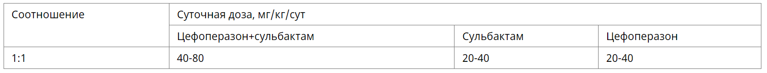 Применение у детей. У детей цефоперазон+сульбактам рекомендуется использовать в следующих дозах: