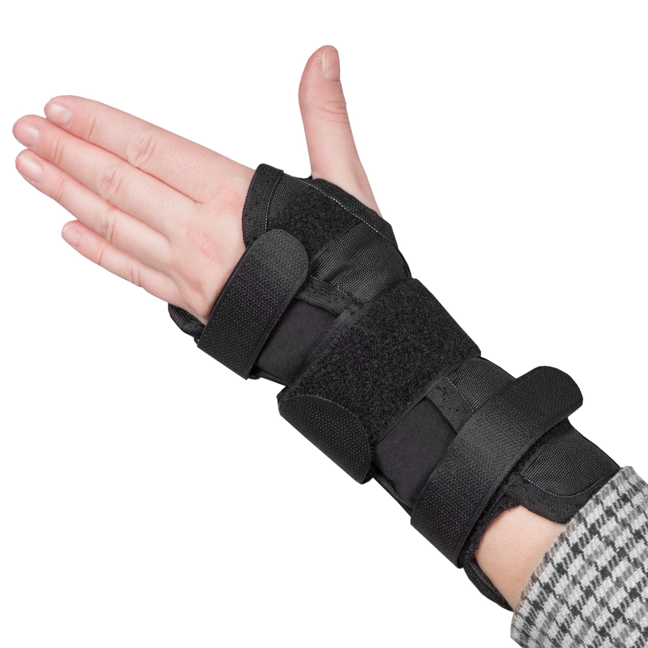 • Имеет съемную пластиковую шину анатомической формы длиной 17 см, которая проходит по ладонной поверхности