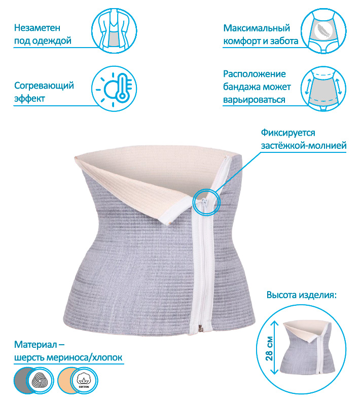• Благодаря застежке-молнии, бандаж легко надевается и надежно фиксируется на теле