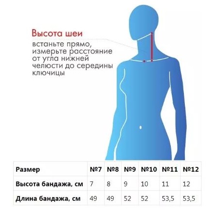 • Выбрать необходимую высоту воротника, измерив длину от ветви нижней челюсти до ключицы;