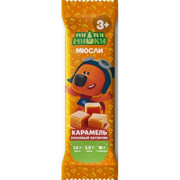 Злаковый батончик со вкусом карамели. Вкусный и питательный перекус с большим содержание злаков. В составе овсяные и кукурузные хлопья, рисовые шарики. Продукт детского питания