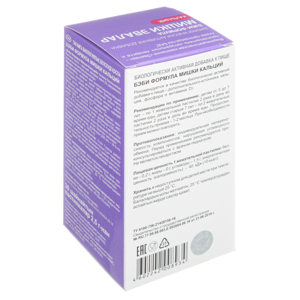 Таким образом, благодаря действию входящих в состав компонентов, Бэби Формула Мишки Кальций: