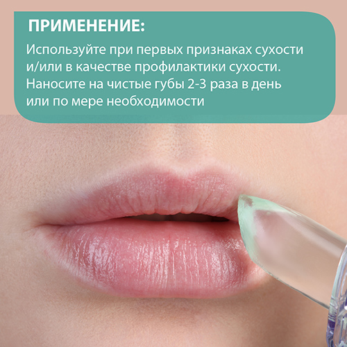 Используйте при первых признаках сухости и/или в качестве профилактики сухости. Наносите на чистые губы 2-3 раза в день или по мере необходимости.