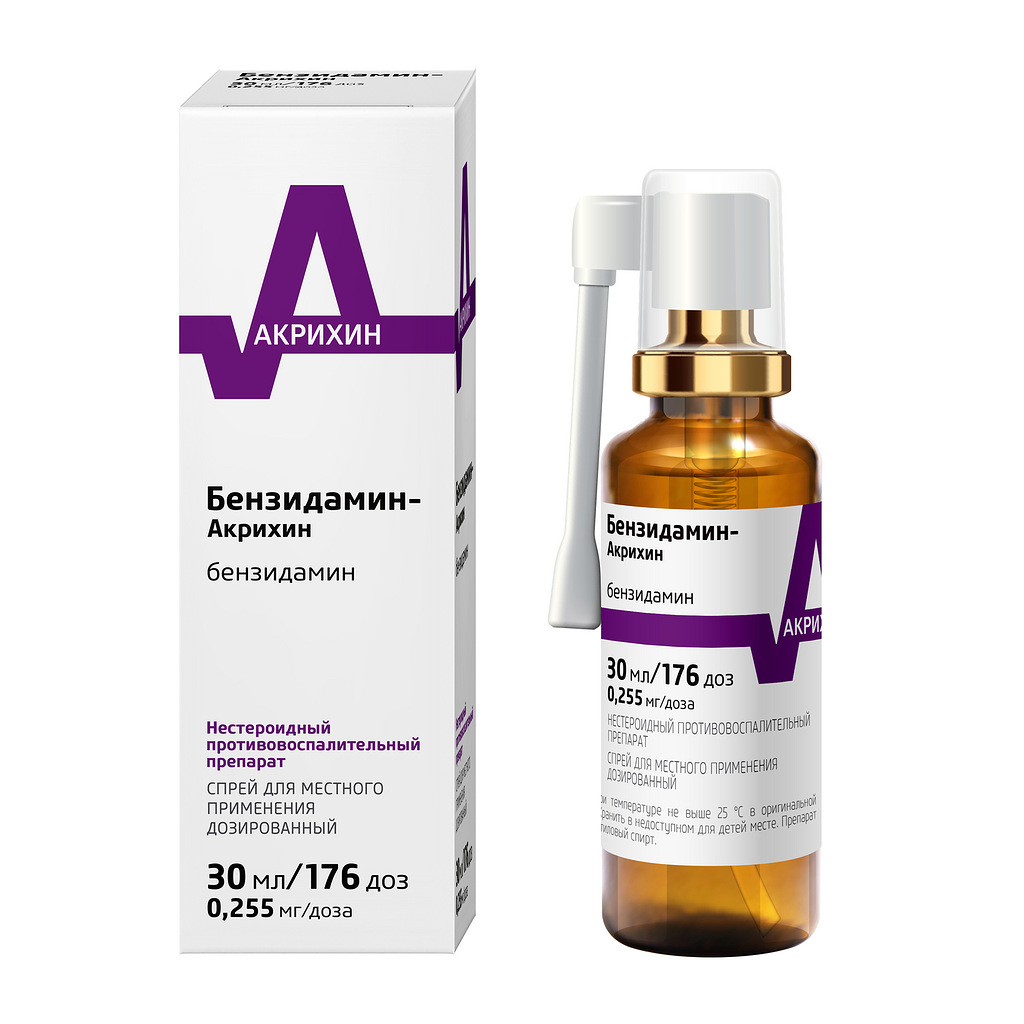 Одна доза (одно впрыскивание) соответствует 0,255 мг бензидамина.