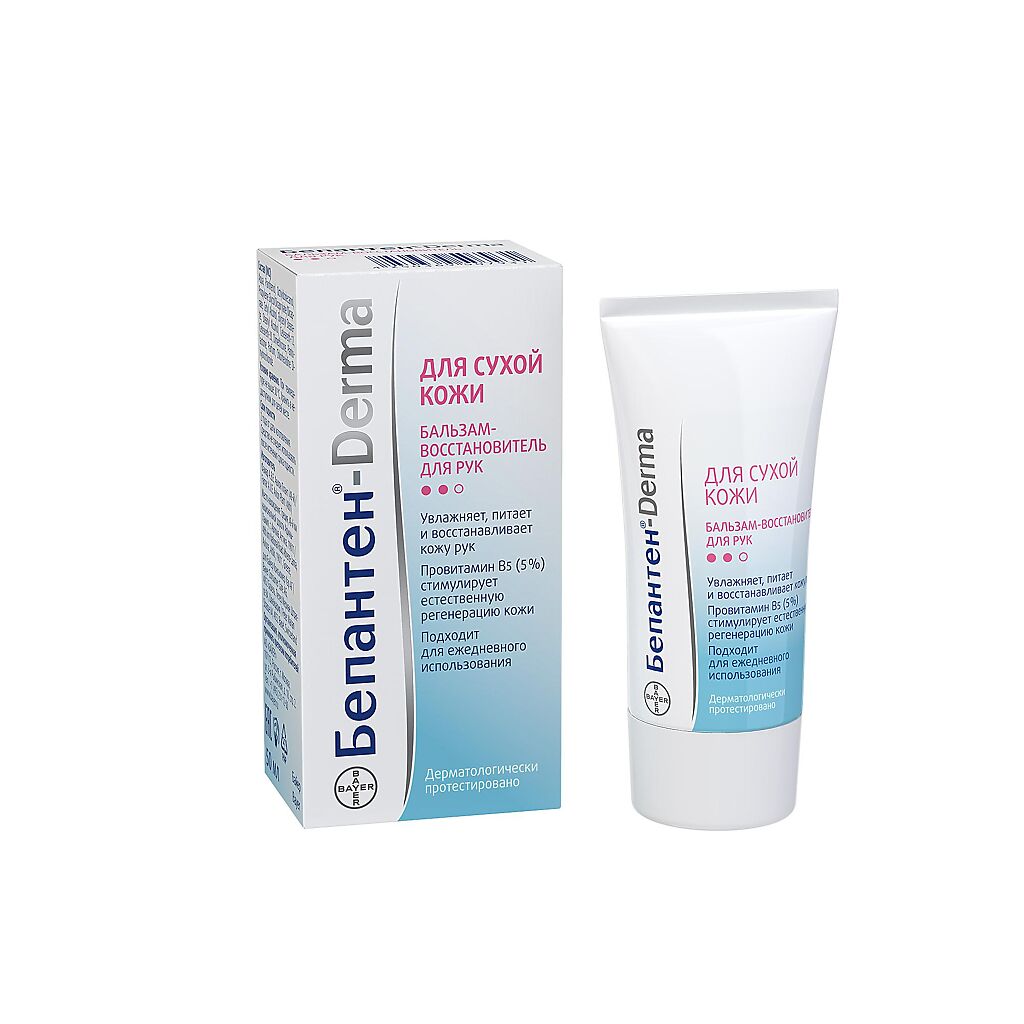 Бепантен Derma Бальзам-Восстановитель для рук Содержит провитамин B5 в высокой концентрации (5%), благодаря чему способствует глубокому увлажнению и запускает естественные процессы восстановления кожи. Интенсивно смягчает, питает и восстанавливает кожу рук.