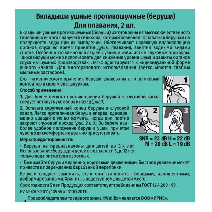 Обеспечивают надежную водоизоляцию органов слуха во время принятия душа, плавания, занятия водными видами спорта. Особенно это важно для людей с узким и извилистым слуховым проходом. Также беруши можно использовать для снижения уровня шума и защиты органов слуха на шумных производствах.