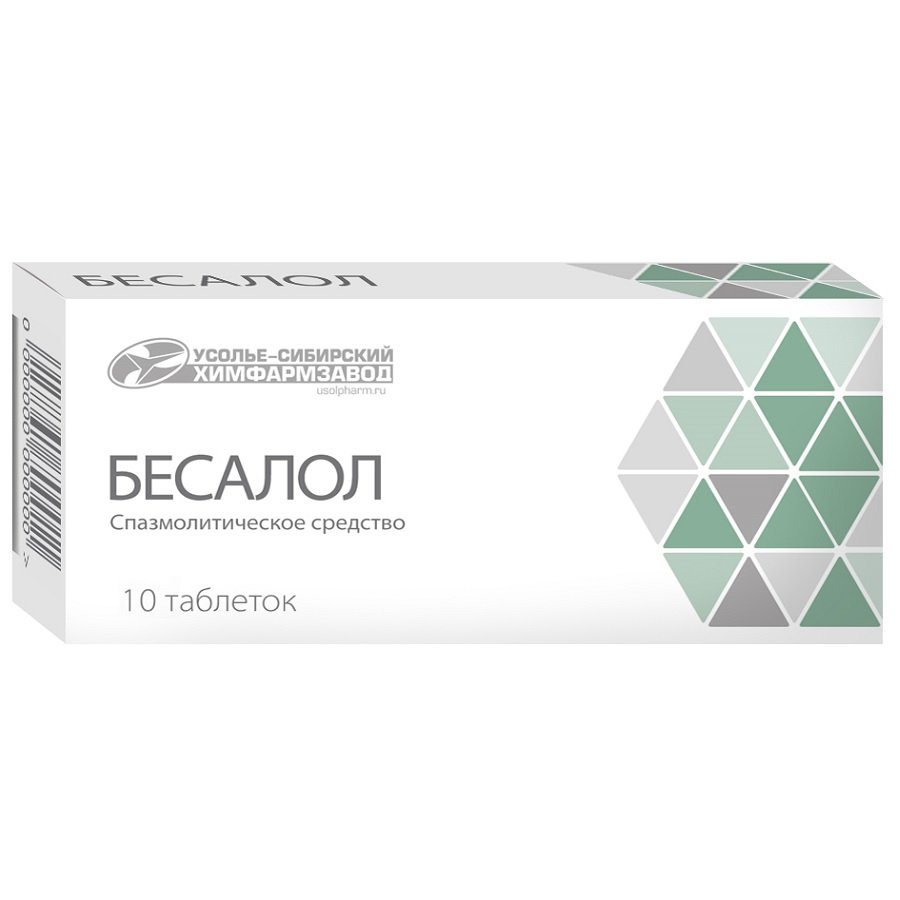 Действующие вещества: Фенилсалицилат - 300 мг, Белладонны листьев экстракт (красавки экстракт густой) - 10 мг.