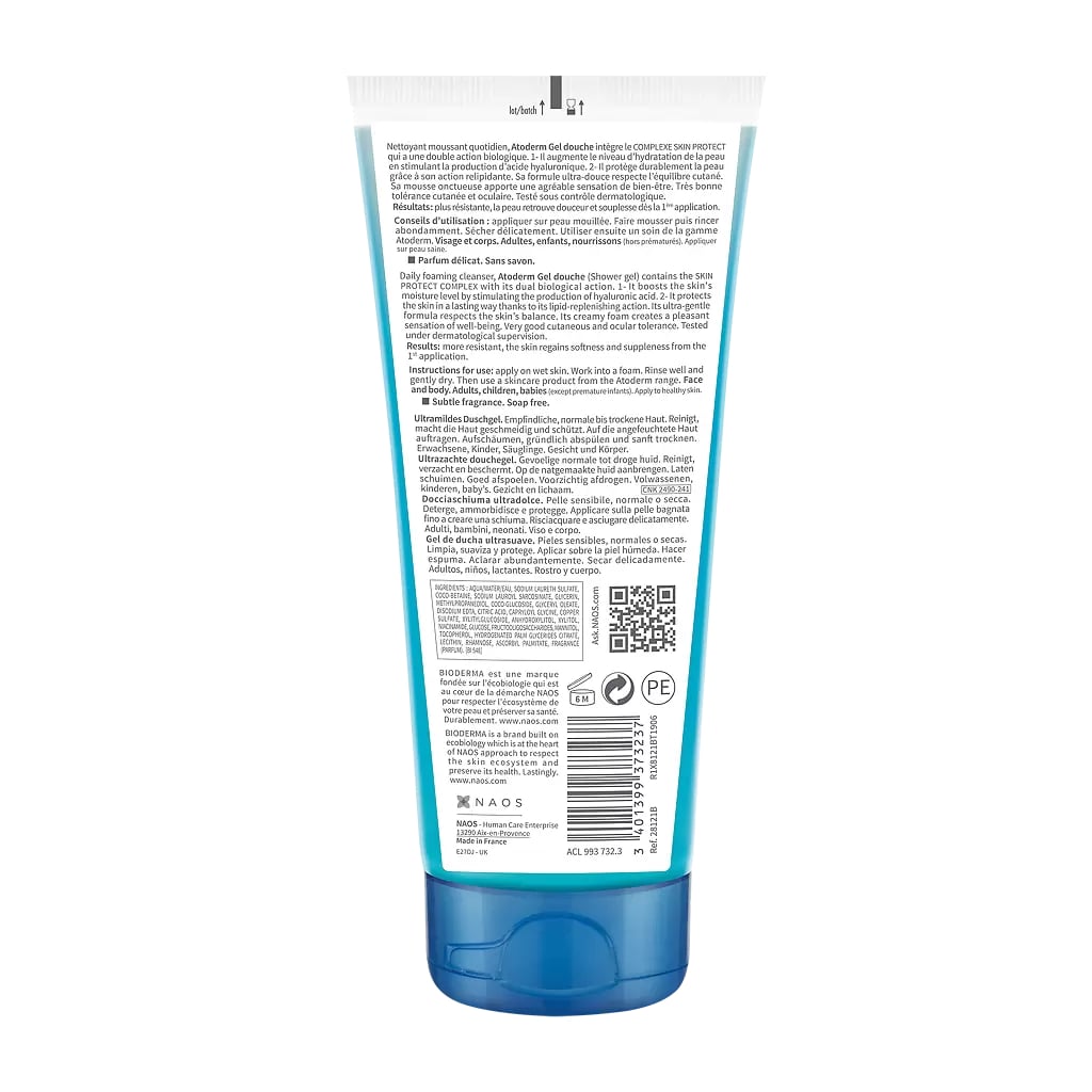 Гель для душа Bioderma Atoderm мягко очищает и сохраняет гидролипидный баланс кожи. Благодаря смягчающим и увлажняющим компонентам в составе он сохраняет кожу мягкой, не пересушенной и не нарушает целостность эпидермиса.