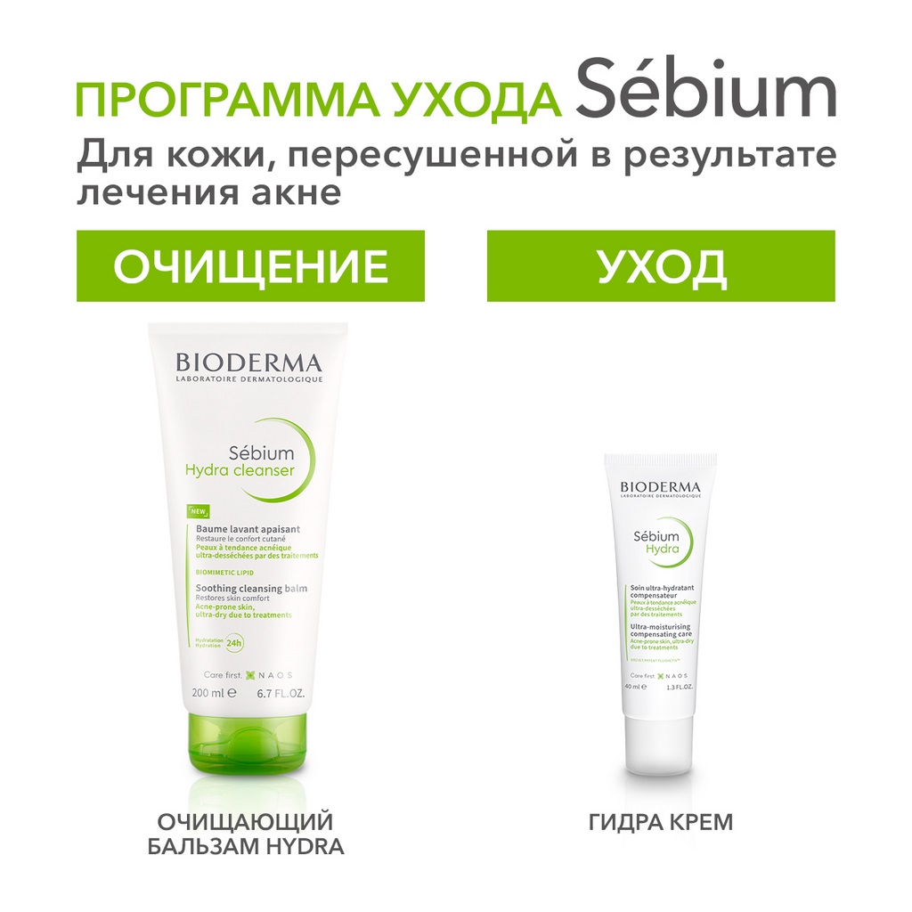 Успокаивающий очищающий бальзам Sebium Hydra подходит для склонной к акне и пересушенной в результате терапии кожи. Обволакивающая текстура средства специально разработана для мягкого очищения, которое бережно относится к ослабленной и очень сухой в результате процедур кожи. Бальзам идеально очищает, мгновенно успокаивает, питает и увлажняет кожу на 24 часа.