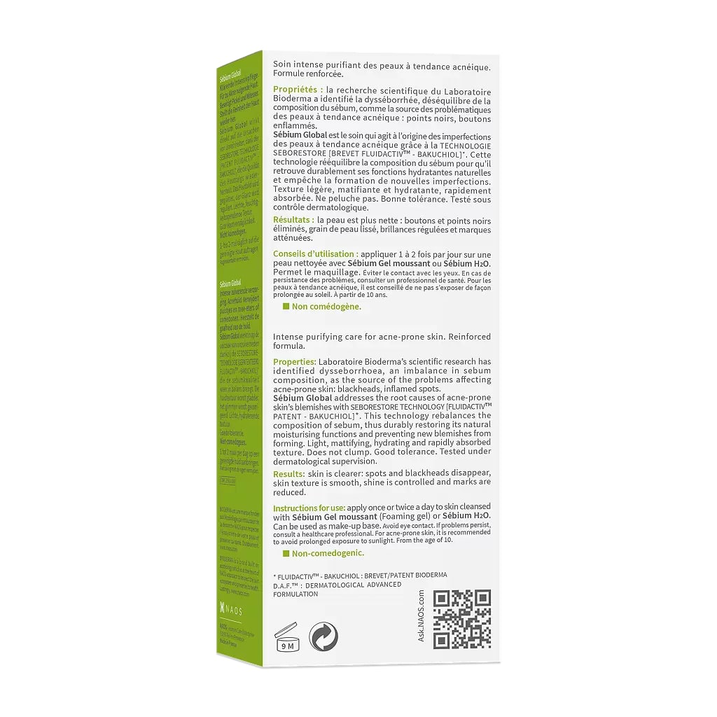 Способствует удалению воспалительных элементов и камедонов. Инновация лаборатории Bioderma, Sebium Глобаль биологически воздействует на все причины и последствия выраженных дефектов кожи.