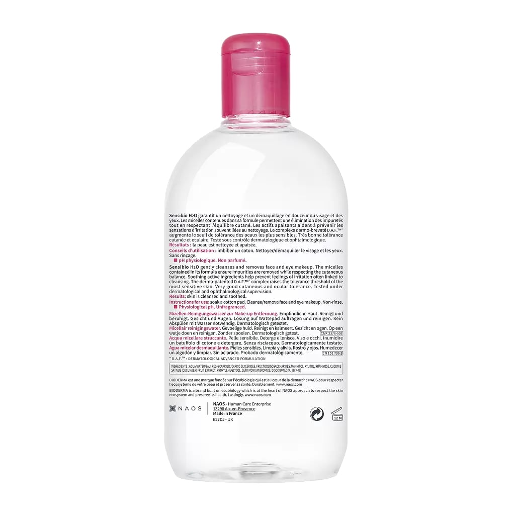 Мицеллярная вода Bioderma Sensibio содержит мицеллы, которые буквально захватывают макияж и загрязнения, при этом она не нарушает гидролипидный баланс кожи. Без спирта, парабенов и отдушек. Подходит всем типам кожи, в том числе чувствительной и реактивной.