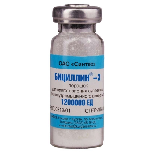 После введения Бициллина-3 в дозе 2.4 млн. ЕД концентрация в сыворотке крови на 14 день составляет 0.12 мкг/мл; после введения Бициллина-3 в дозе 1.2 млн. ЕД концентрация в сыворотке крови на 21 день составляет 0.06 мкг/мл.