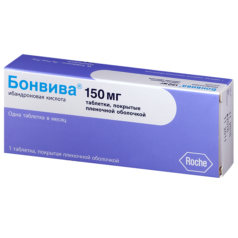 Кроме того, при проведении проспективного анализа было доказано, что Бонвива® при режиме дозирования 150 мг 1 раз в месяц превосходит препарат Бонвива® 2.5 мг ежедневно по степени увеличения МПК поясничных позвонков (на первом году исследования р=0.002 и на втором году исследования р <0.001).