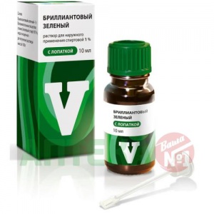 Бриллиантового зеленого раствор спиртовой наносят непосредственно на поврежденную поверхность.