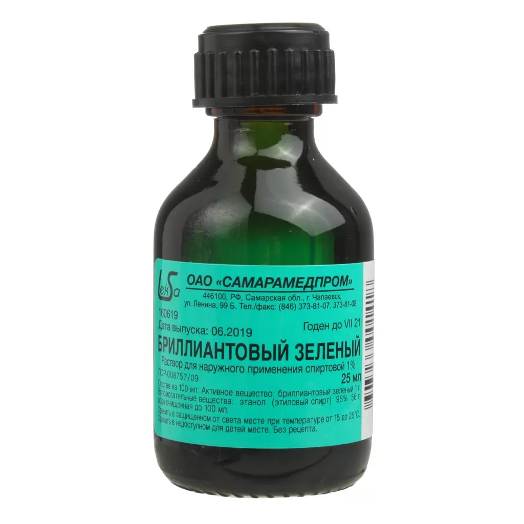 Активное вещество: бриллиантовый зеленый - 1 г; вспомогательные вещества: этанол (этиловый спирт) 95%, вода очищенная.