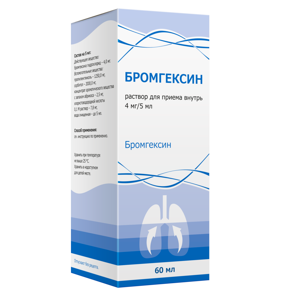 Действующее вещество: бромгексина гидрохлорид - 4 мг.