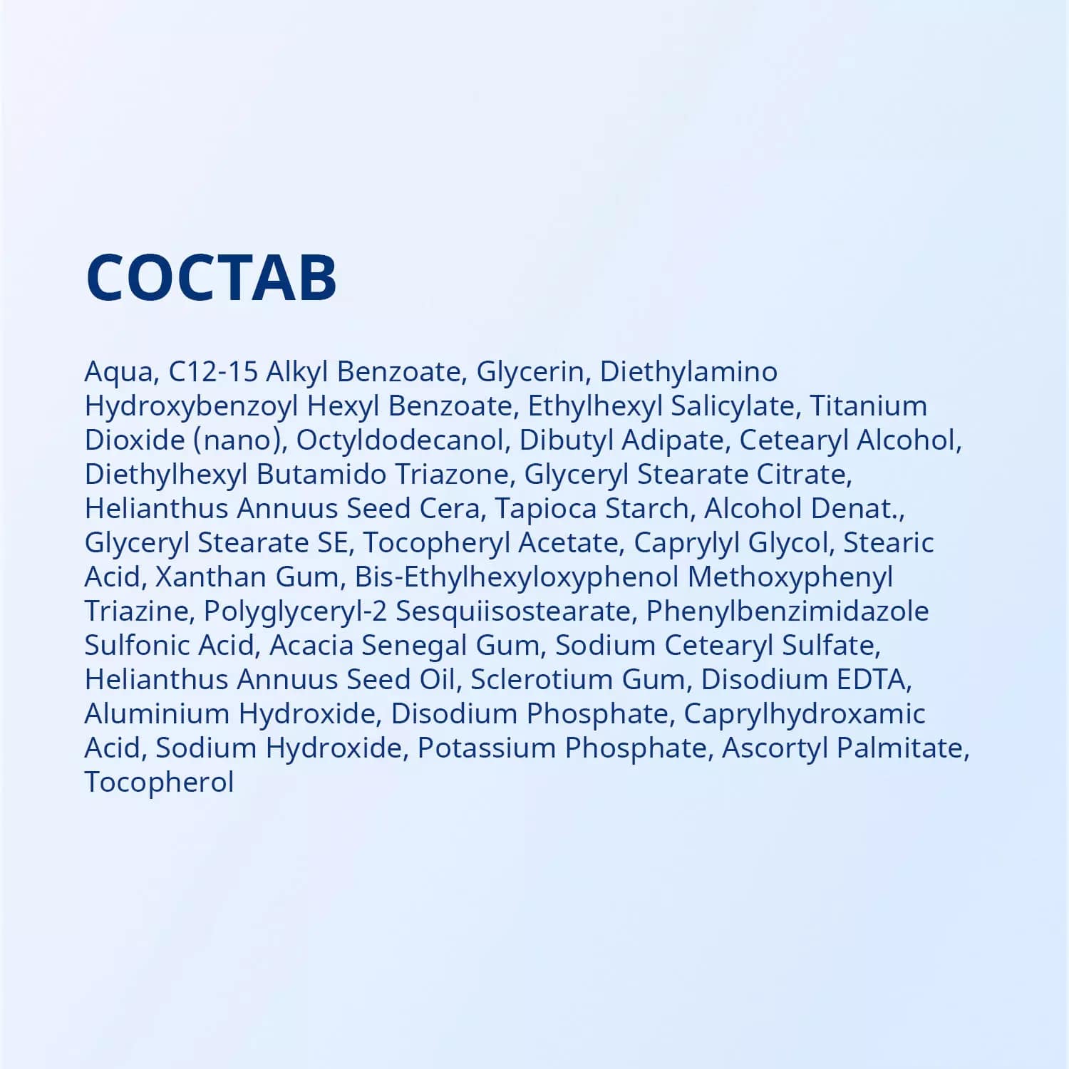 Aqua, c12-15 alkyl benzoate, glycerin, diethylamino hydroxybenzoyl hexyl benzoate, ethylhexyl salicylate, titanium dioxide (nano), octyldodecanol, dibutyl adipate, cetearyl alcohol, diethylhexyl butamido triazone, glyceryl stearate citrate, helianthus annuus seed cera, tapioca starch, alcohol denat., glyceryl stearate se, tocopheryl acetate, caprylyl glycol, stearic acid, xanthan gum, bis-ethylhexyloxyphenol methoxyphenyl triazine, polyglyceryl-2 sesquiisostearate, phenylbenzimidazole sulfonic acid, acacia senegal gum, sodium cetearyl sulfate, helianthus annuus seed oil, sclerotium gum, disodium edta, aluminium hydroxide, disodium phosphate, caprylhydroxamic acid, sodium hydroxide, potassium phosphate, ascortyl palmitate, tocopherol.