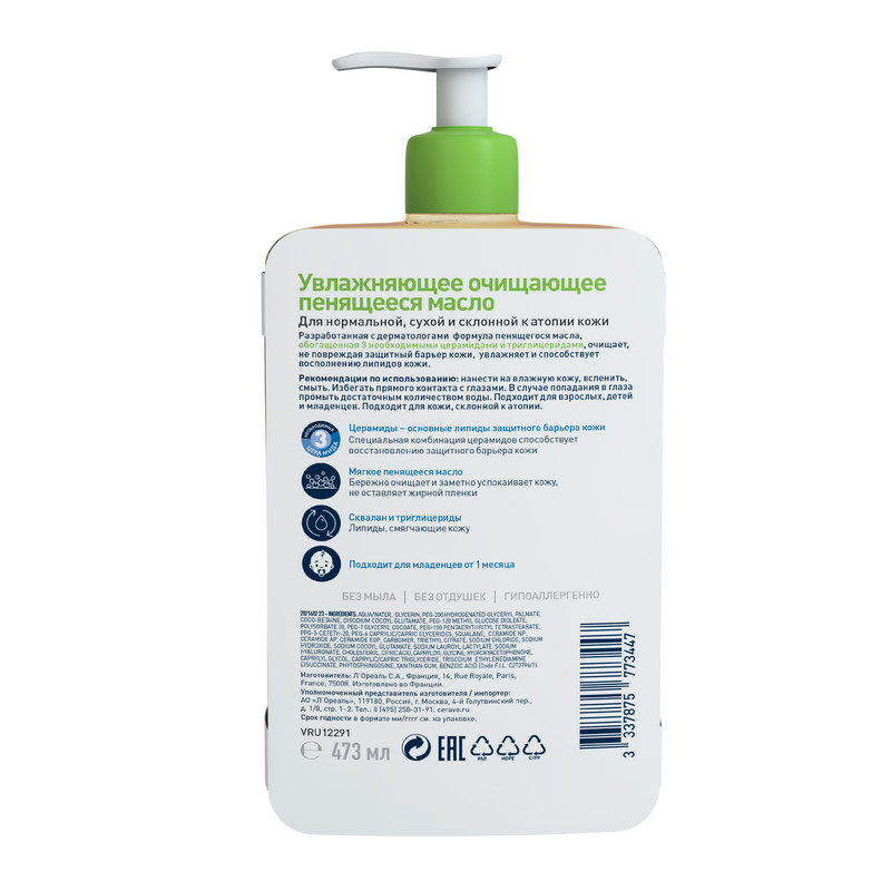 CeraVe масло очищ 473мл увлажн пенящееся ⭐ купить в интернет-аптеке Таблетка.ру (Ваша №1) | Москва и Московская область