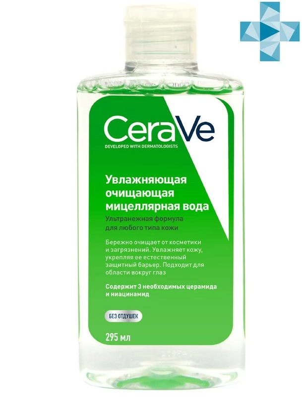 Увлажняющая мицеллярная вода CeraVe, обогащенная тремя необходимыми церамидами, эффективно удаляет загрязнения, кожное сало и макияж.