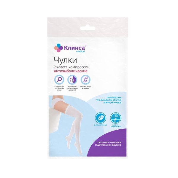 Клинса чулки антиэмболические 2 класс размер M белые ⭐ купить по низкой цене в аптеке Таблетка.ру (Ваша №1) | Москва и Московская область