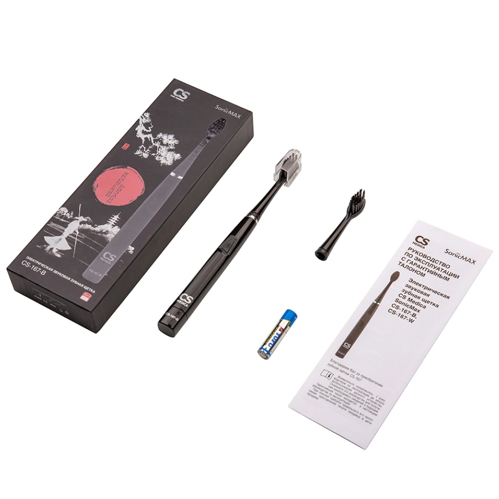 Зубная щетка SonicMax CS-167-B работает от одной батарейки, заряда которой достаточно для эксплуатации в течение 150 дней.
