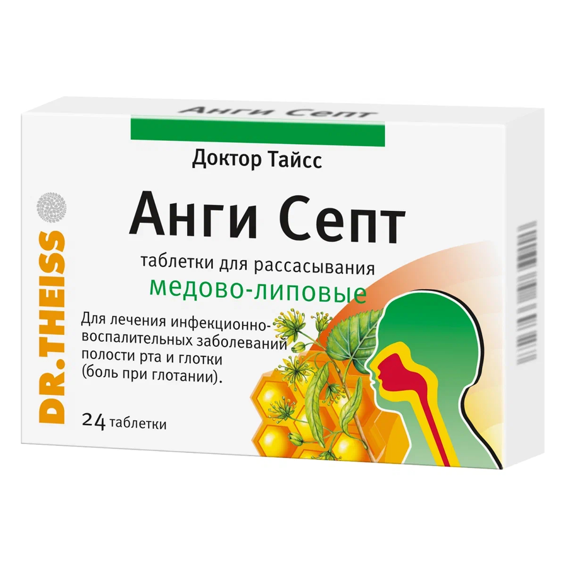 Активные вещества: анетол 2.4 мг, 2,4-дихлорбензиловый спирт 1.2 мг, ментол рацемический 5.4 мг, масло мяты перечной 600 мкг.