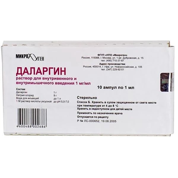 Даларгин (Тирозил-D-алаиил-глинил- фенилаланил-лейцил-аргипина диацетат [в пересчете на тирозил-D-аланил-глицил- фенилаланил-лейцил-аргинин]) - 1 мг