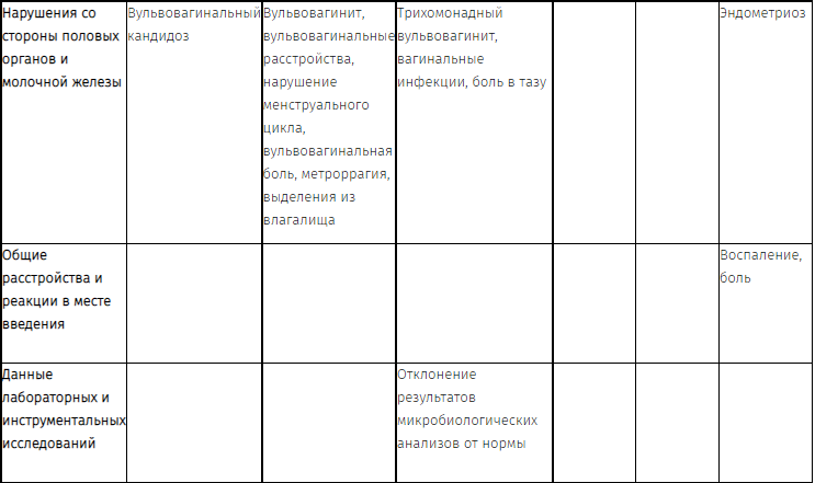 Пациенток следует предупредить о том, что во время терапии препаратом не следует вступать в половые сношения, а также применять другие средства для интравагинального введения (тампоны, спринцевание).