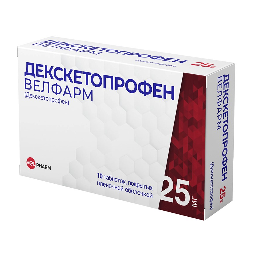 Для декскетопрофена характерна высокая степень связывания с белками плазмы крови (99%). Среднее значение Vd составляет менее 0.25 л/кг, период полураспределения составляет около 0.35 ч.