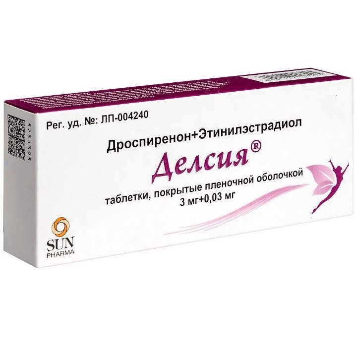Действующие вещества: дроспиренон 3 мг, этинилэстрадиол 0,03 мг;