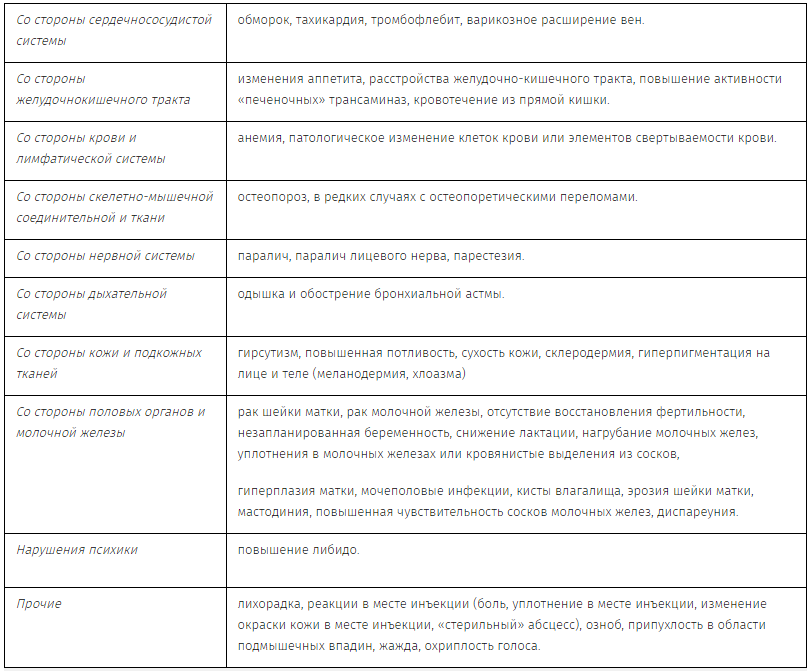 Как и при применении любых инъекционных препаратов, особенно при некорректном введении, на фоне применения препарата ДЕПО-ПРОВЕРА® имеется риск развития реакции в месте введения в виде абсцесса, что может потребовать медицинского и/или хирургического вмешательства.