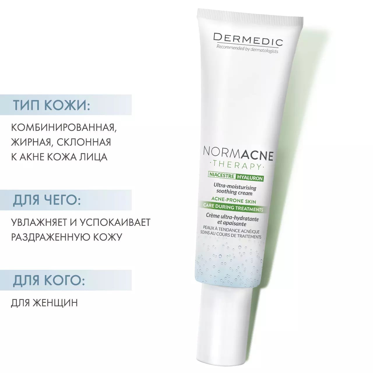 Ультра-увлажняющий успокаивающий крем - это специальный уход за кожей, рекомендованный в качестве дополнительного ухода за кожей во время лечения ретиноидами или антибиотиками.Обеспечивает интенсивное и глубокое увлажнение, обеспечивая немедленное облегчение раздраженной кожи.