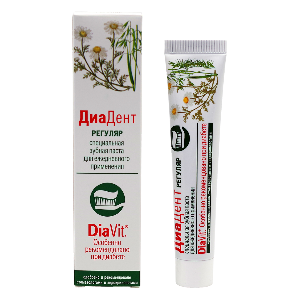 Зубная паста ДиаДентРегуляр способствует восстановлению и поддержанию нормальной трофики (питания) тканей. Разработана специально для людей с сахарным диабетом, но является эффективным продуктом и для людей со схожими проблемами полости рта.