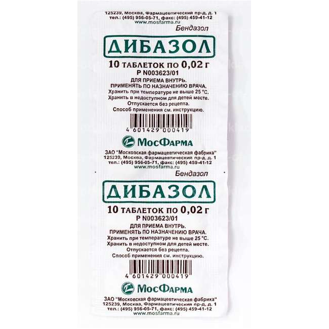 Активное вещество: дибазола - 0,02 г.