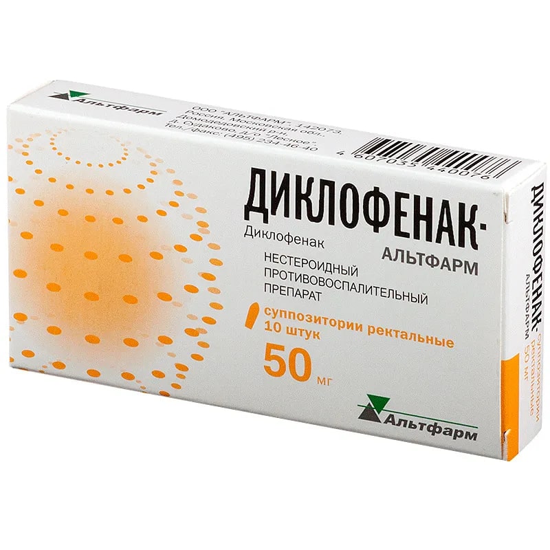 Действующее вещество: диклофенак 50 мг,
