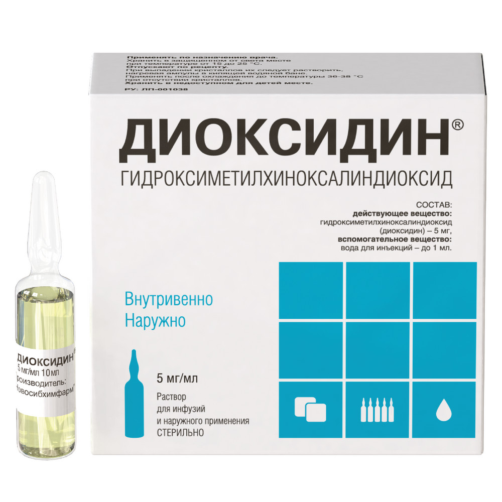 Диоксидин в виде растворов 1-2 мг/мл используются также для профилактики инфекции после оперативных вмешательств.
