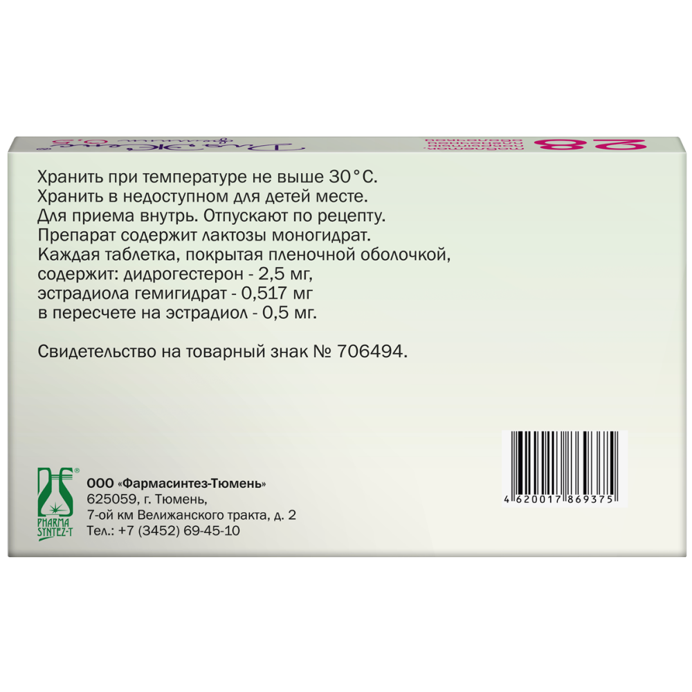 Действующими веществами являются дидрогестерон и эстрадиол.