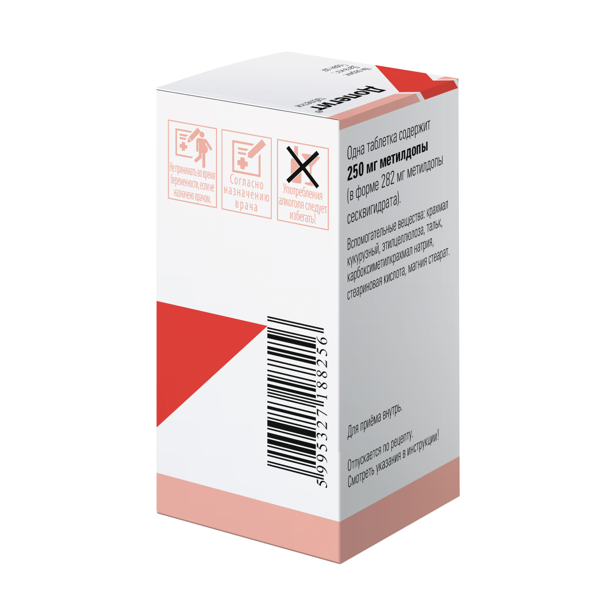 Активное вещество: метилдопы сесквигидрат 282 мг, что соответствует содержанию метилдопы 250 мг.