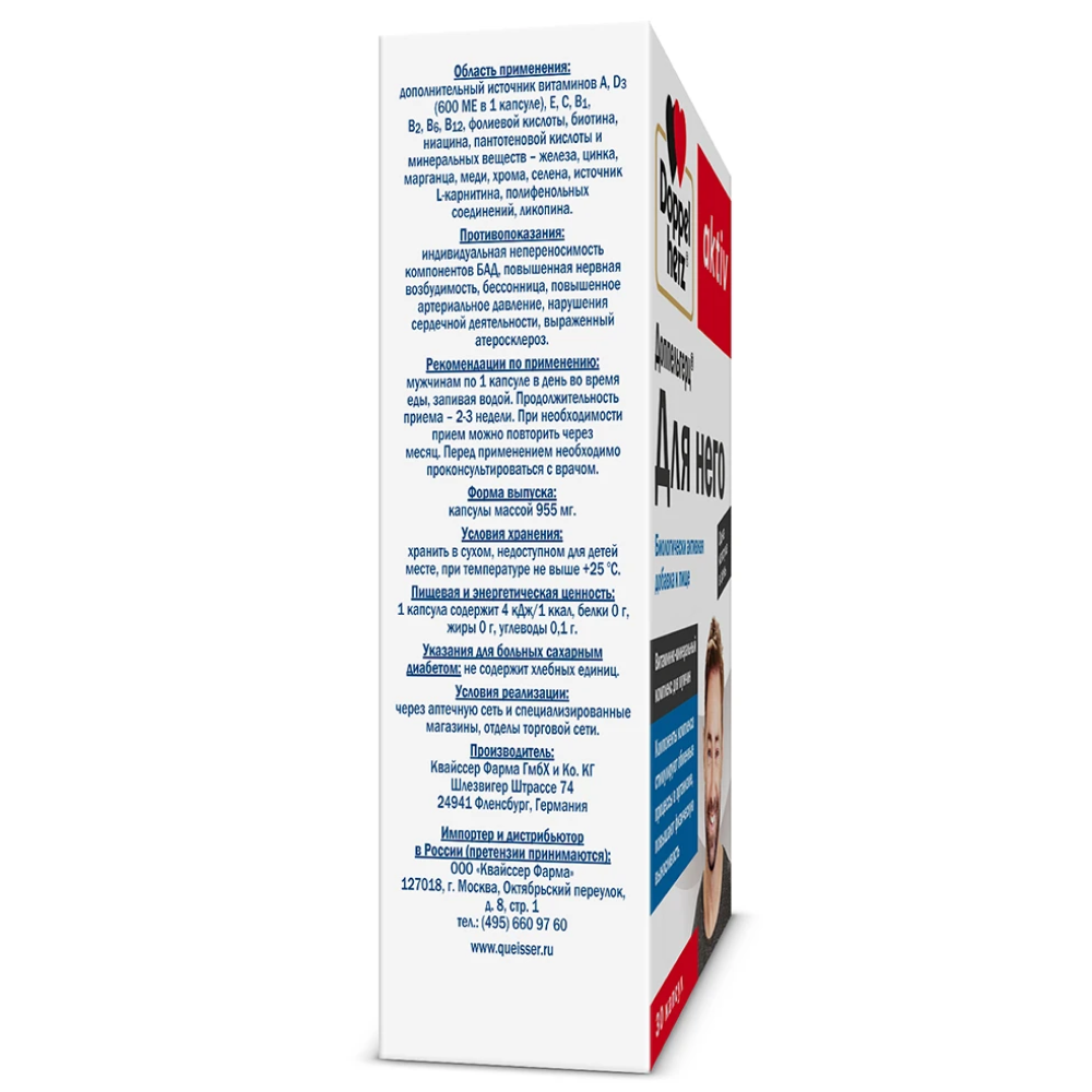 Мужчинам по 1 капсуле в первой половине дня во время еды. Продолжительность приема 1 месяц. После перерыва в 1 месяц возможен повторный прием.