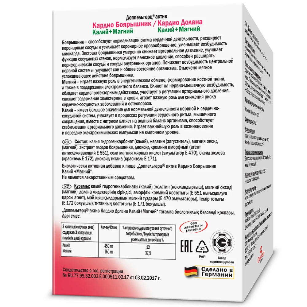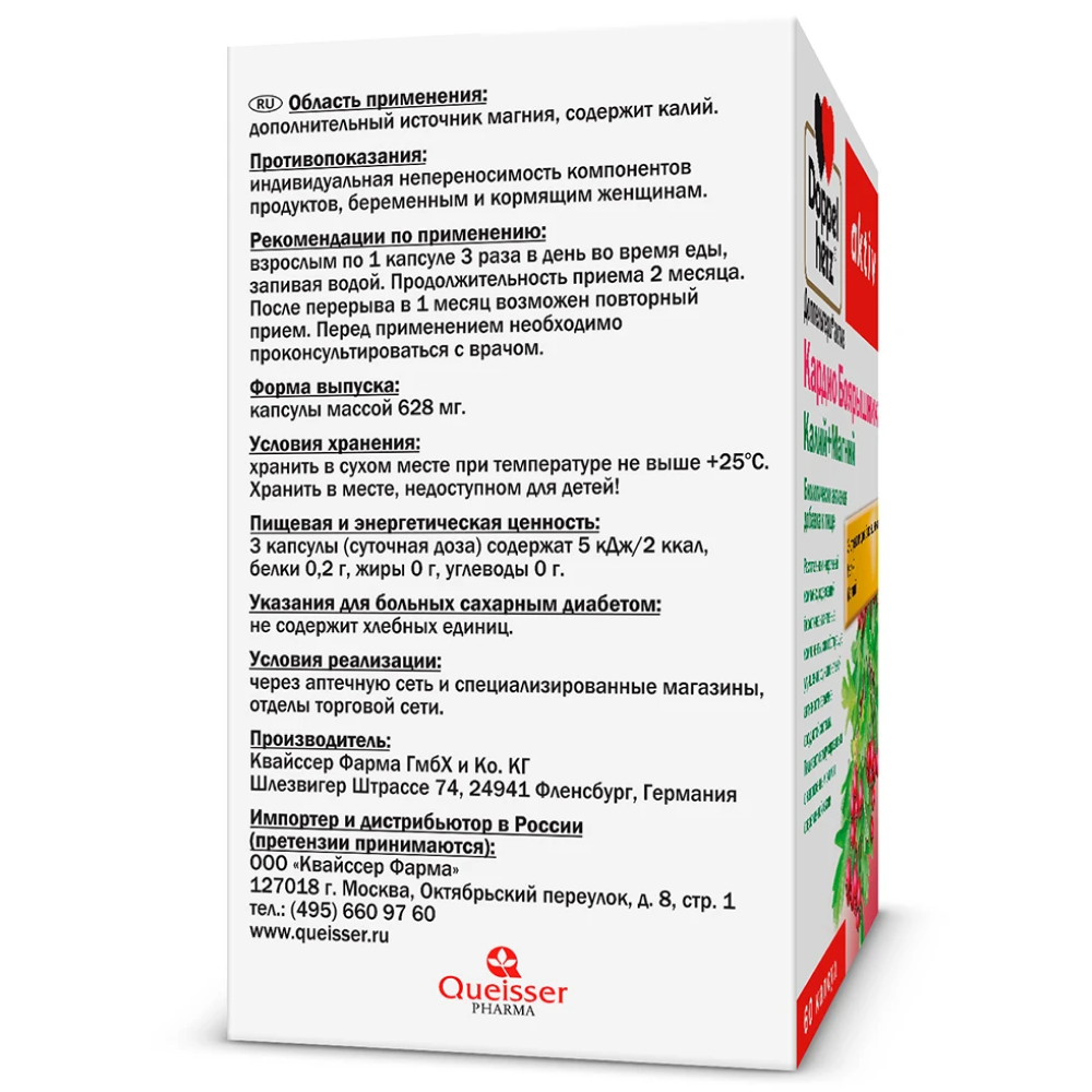 Калий имеет большое значение для нормальной деятельности нервной и сердечно-сосудистой систем. Участвует в процессах регуляции сердечного ритма, мышечного сокращения, вместе с натрием влияет на водный баланс организма, способствует стабилизации артериального давления. Играет важнейшую роль в возникновении и передаче электрохимических импульсов на клеточном уровне. Регулирует процесс проникновения питательных веществ через клеточные мембраны. Калий необходим для секреции некоторых гормонов. Секреция стрессовых гормонов вызывает уменьшение соотношения калий/натрий вне и внутри клеток. В результате этого в условиях стресса повышается потребность организма в калии. При заболеваниях почек, диарее, применении диуретиков или слабительных средств возможно резкое понижение уровня калия в крови. Курение и употребление кофе уменьшают всасывание калия.