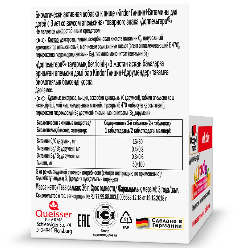 Глицин – заменимая аминокислота, которая вырабатывается в организме человека и постоянно расходуется. Благодаря глицину головной мозг способен выдерживать повышенные умственные нагрузки, он возвращает работоспособность мозга и способствует развитию памяти у детей. Глицин увеличивает концентрацию внимания, избавляет от быстрой и частой утомляемости, снижает утомляемость, облегчает процесс засыпания, оказывает мягкое успокаивающее действие. Поэтому его прием так необходим для детей дошкольного и школьного возраста.