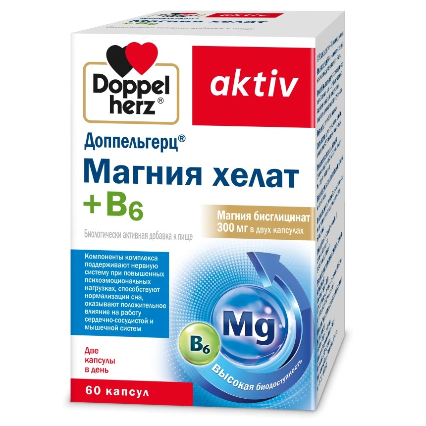 Доппельгерц Актив Магния Хелат + В6 60 шт капсулы ⭐ купить в онлайн-аптеке Таблетка.ру (Ваша №1) | Москва и Московская область