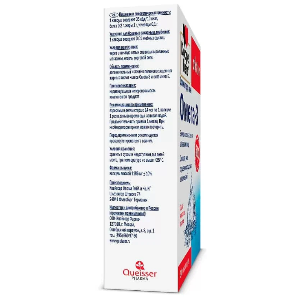 БАД к пище Доппельгерц® актив Омега-3 являетсяисточником натуральных полиненасыщенных жирных кислот Омега – 3, полученный из лососевых рыб, и витамина Е; способствует поддержанию баланса между уровнем холестерина и триглицеридов в крови и снижению риска сердечно-сосудистых заболеваний.