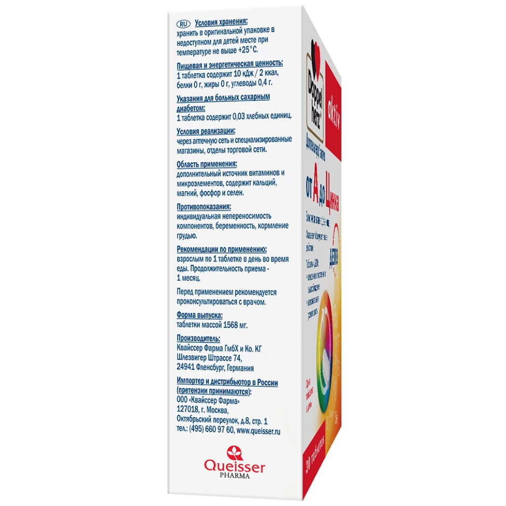 Доппельгерц® актив от А до Цинка предназначен для активных и деловых людей, жизнь которых связана с повышенной умственной, физической и эмоциональной нагрузкой, а также для тех, кто хочет всегда оставаться бодрым и энергичным. Он включает в себя 13 жизненно важных витаминов и 11 минеральных веществ, способствующих повышению сопротивляемости организма к стрессовым ситуациям и неблагоприятным факторам внешней среды.