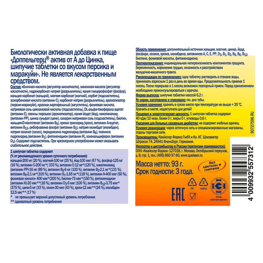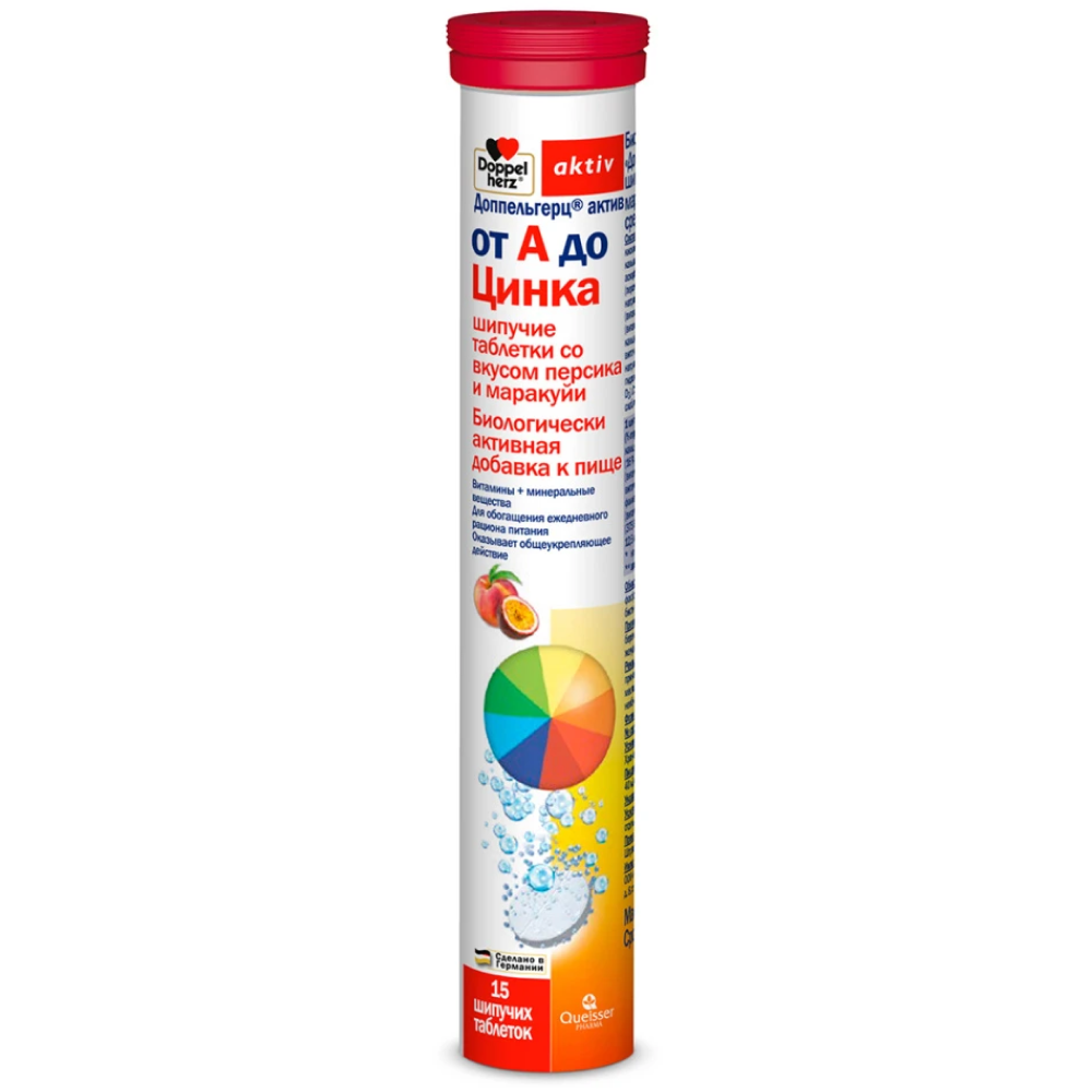 Доппельгерц® актив от А до Цинка предназначен для активных и деловых людей, жизнь которых связана с повышенной умственной, физической и эмоциональной нагрузкой, а также для тех, кто хочет всегда оставаться бодрым и энергичным. Он включает в себя 13 жизненно важных витаминов и 8 минеральных веществ, способствующих повышению сопротивляемости организма к стрессовым ситуациям и неблагоприятным факторам внешней среды.