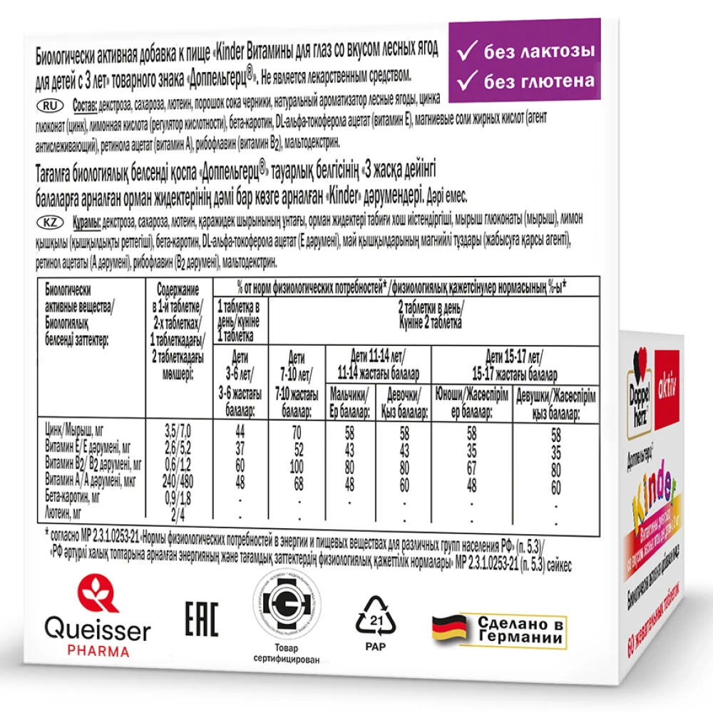 | Лютеин, мг | 2/4 | - | - | - | - | - | - |