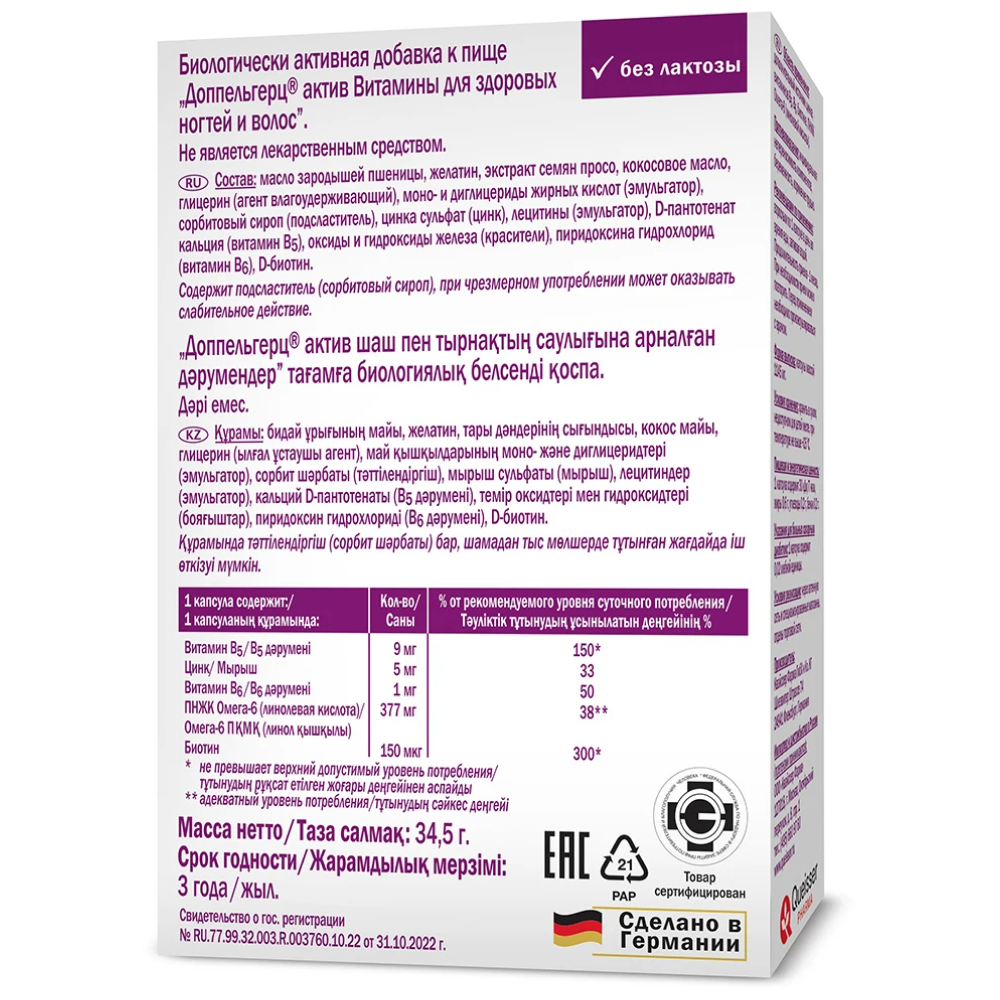 Доппельгерц актив Витамины для здоровых волос и ногтей – биологически активная добавка к пище, комплекс женской красоты.