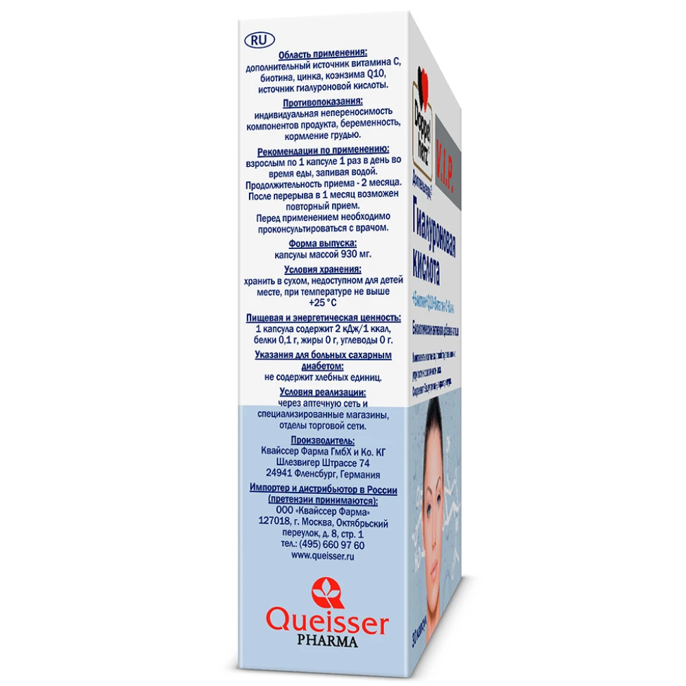 Дополнительный источник витамина С, биотина, цинка, коэнзима Q10, источник гиалуроновой кислоты.
