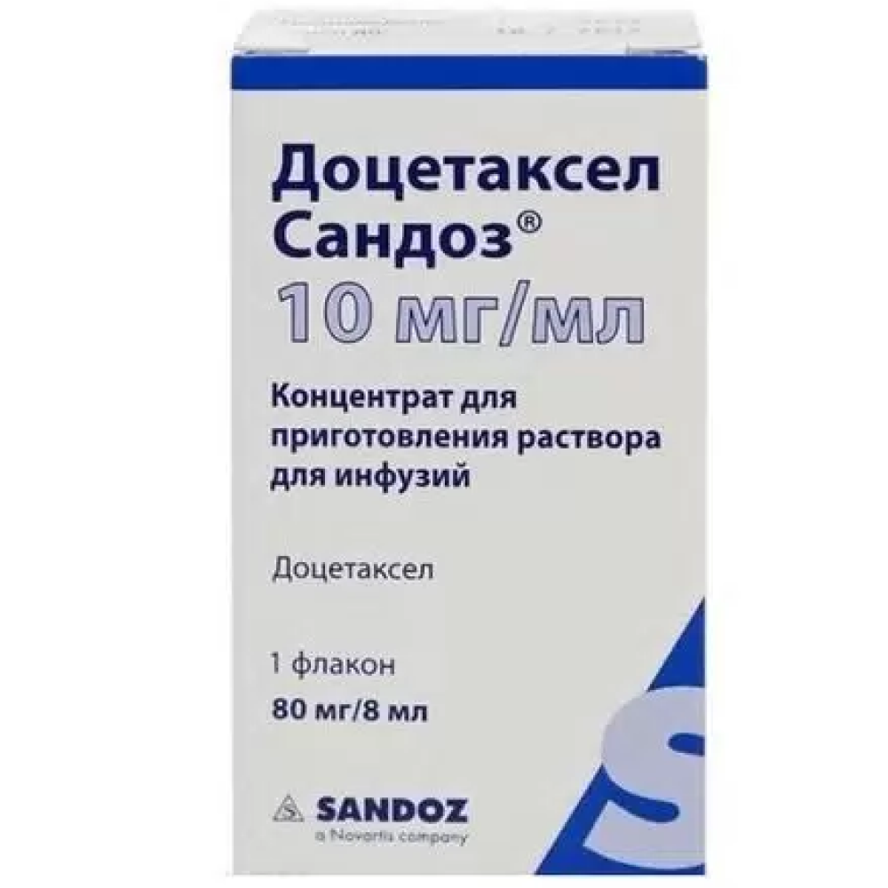 - Местно-распространенный или метастатический РМЖ (препарат Доцетаксел Сандоз® в комбинации с доксорубицином, терапия 1-ой линии).